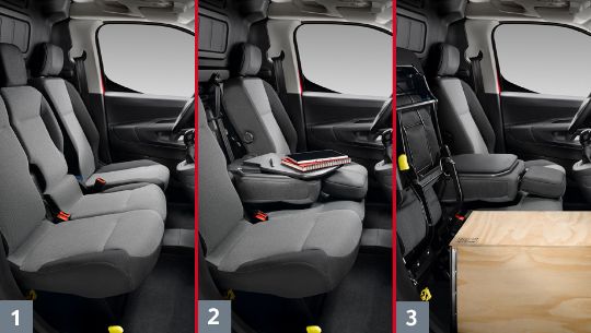 3 - Scaunul lateral ridicat eliberează un spațiu suplimentar util și practic pentru transportul celor mai delicate obiecte, crescând astfel volumul de încărcare de la 3.3 la 3.8 m3 în versiunea M și de la 3.9 la 4.4 m3 în versiunea XL.